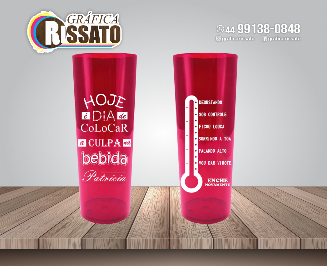Todos os copos long drink são personalizados de acordo com a necessidade de cada cliente, é só informar como deseja a arte que montamos uma amostra virtual sem custo algum.